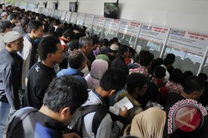 Ilustrasi. Calon penumpang antre menukarkan tiket kereta api di loket Stasiun Pasar Senen, Jakarta, Sabtu (21/13). (ANTARA FOTO/Puspa Perwitasari)